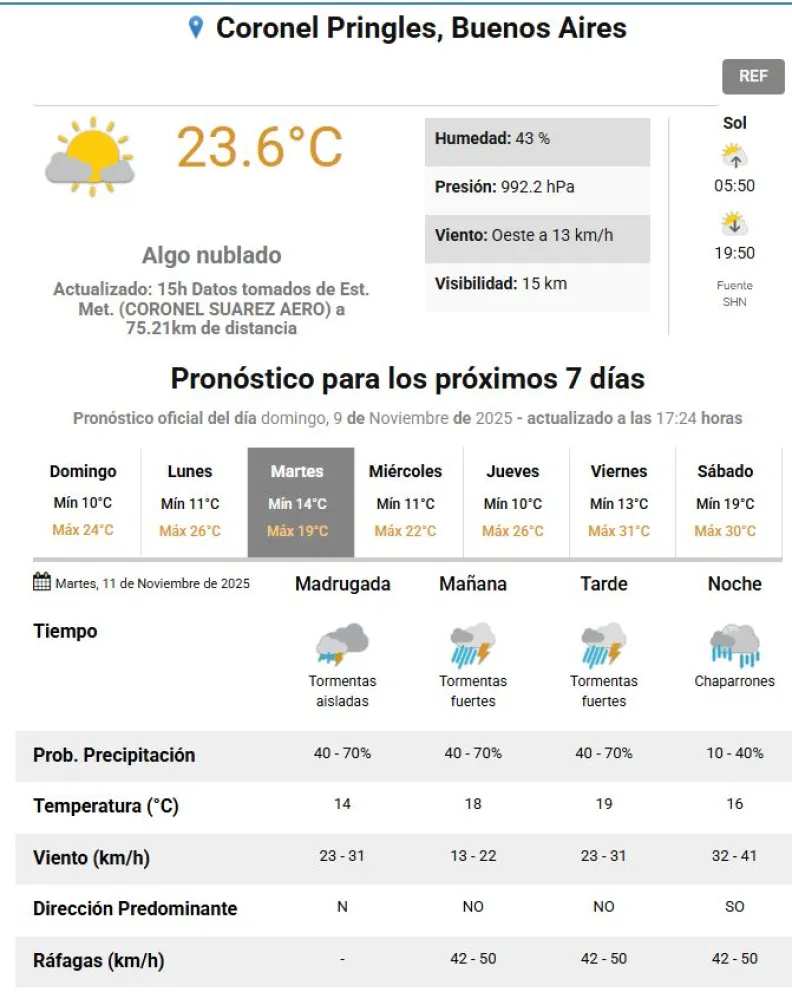 El Servicio Meteorológico Nacional emitió un alerta amarilla por tormentas para Pringles a y todo el Sudoeste Bonaerense.
