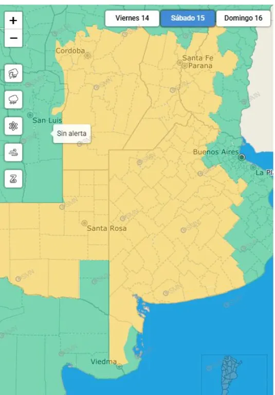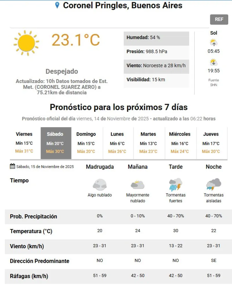 El Servicio Meteorológico Nacional emitió una alerta amarilla por tormentas para este sábado a la tarde en Coronel PRingles y casi toda la provincia de Buenos Aires.