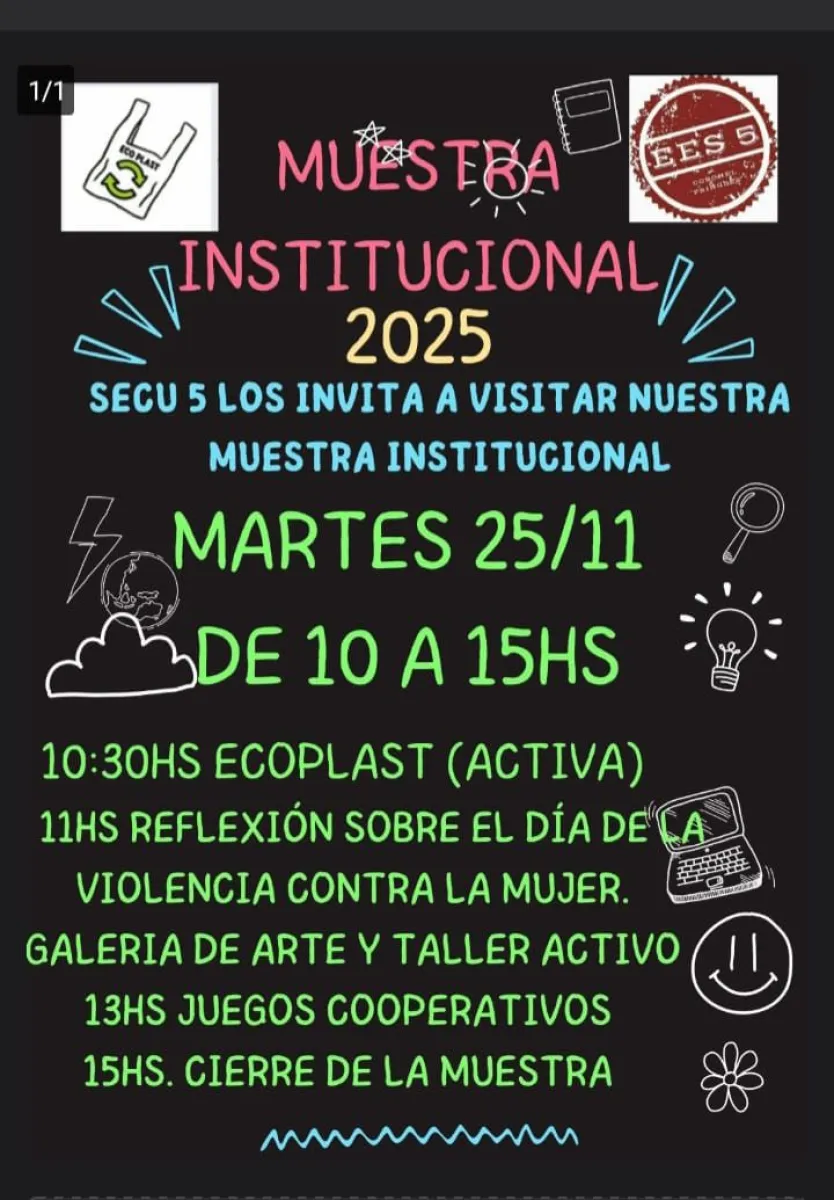 Se lleva adelante hoy la muestra institucional de la Secundaria 5 de nuestra ciudad.