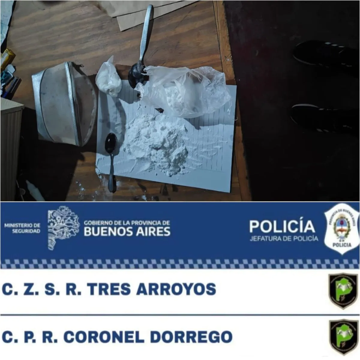En el otro procedimiento, realizado en una vivienda ubicada en calle Ramos Ojeda, donde reside el hombre, también se procedió al secuestro de elementos relacionados con la causa y se constató la presencia de una importante cantidad de sustancia blanca similar a clorhidrato de cocaína, dándose intervención a la UFIJ Nº 19 del Departamento Judicial Bahía Blanca.