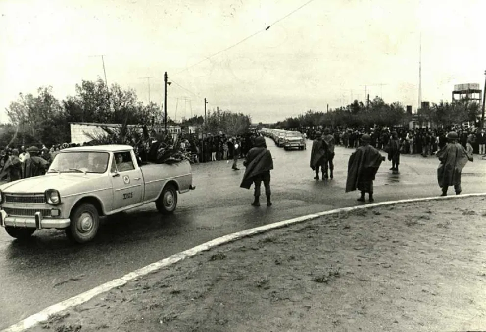 El sepelio, celebrado el 17 de abril de 1976, fue multitudinario. El momento más simbólico fue el cortejo fúnebre que duró una hora: los 34 ataúdes fueron trasladados al cementerio de Cutral Co en 34 Rastrojeros de YPF, los vehículos utilitarios, íconos del trabajo petrolero. El mausoleo común donde fueron depositados los restos, con una placa de YPF que honra a los “Héroes Ypefianos”, se convirtió en el epicentro de un dolor que el Estado militar intentó borrar.