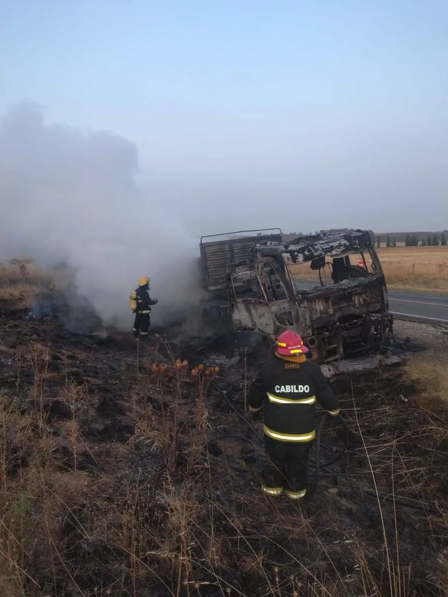 Un camión se incendió esta mañana, cerca de las 6, mientras circulaba por la banquina de la Ruta Provincial 51, a la altura del kilómetro 688, lo que motivó la intervención de los servicios de emergencia.