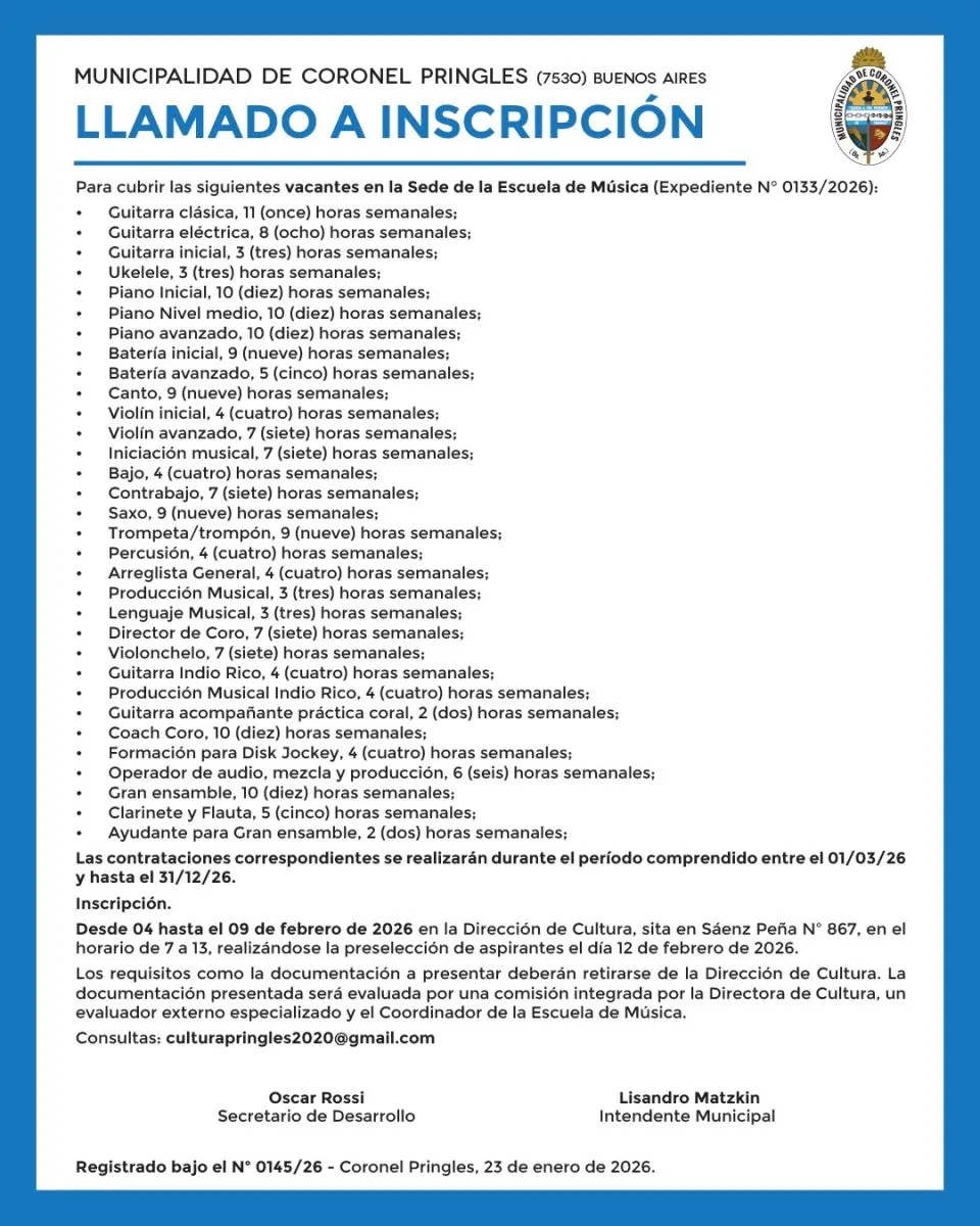 Registrado bajo el Nº 0145/26 - Coronel Pringles, 23 de enero de 2026.